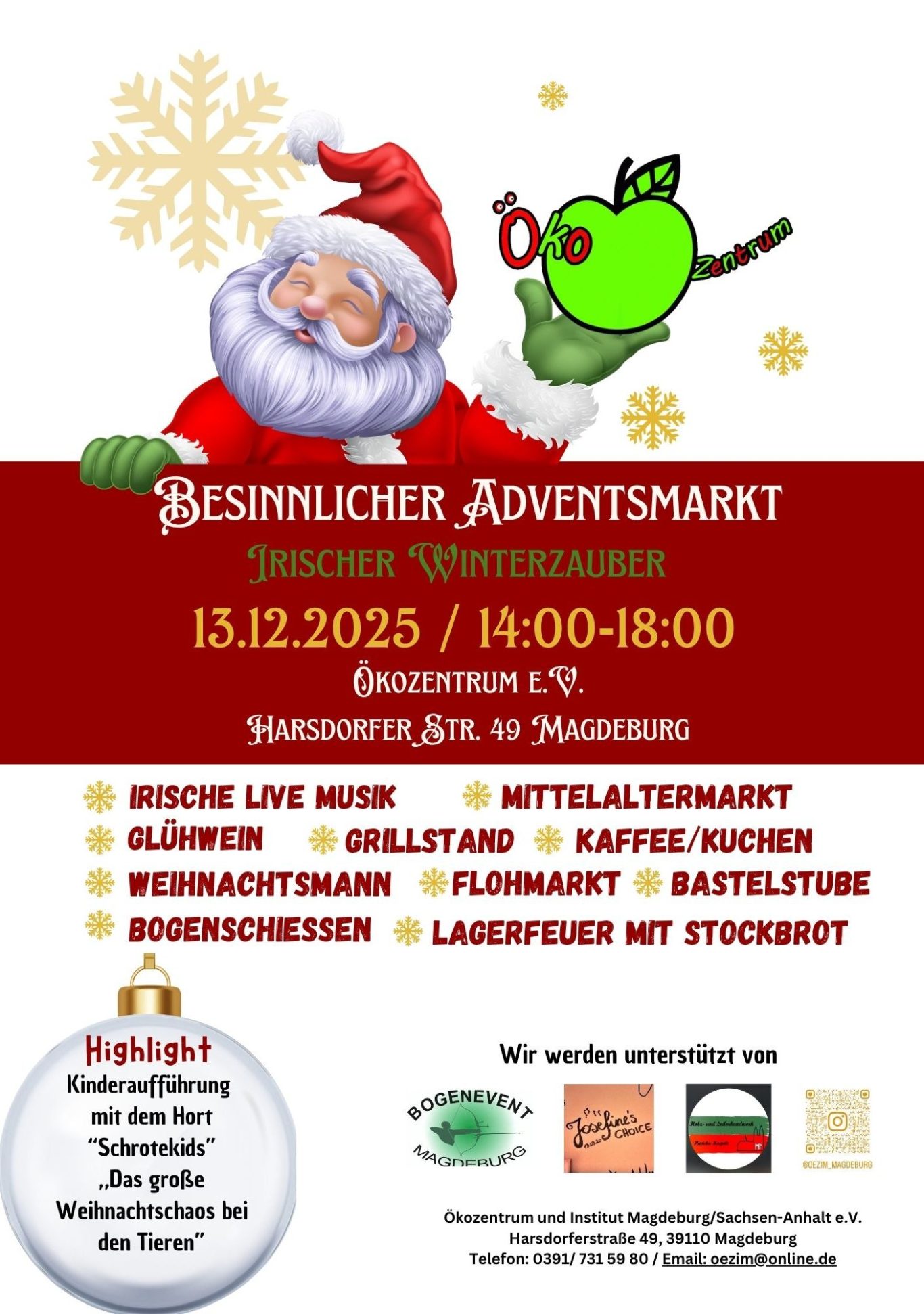 die Adventszeit steht vor der Tür – und wir möchten sie gern gemeinsam mit euch verbringen! Am Samstag, den 13. Dezember 2025, von 14:00 bis 18:00 Uhr laden wir euch herzlich zu unserem „Besinnlichen Adventsmarkt – Irischer Winterzauber“ ein.